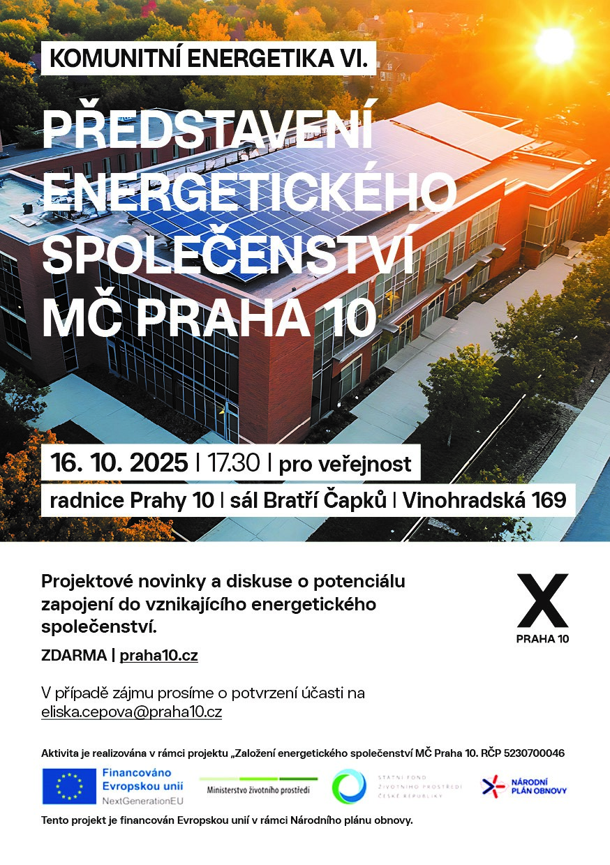 16. října 2025 od 17:30 na radnici MČ Praha 10, sál Bratří Čapků, Vinohradská 169.