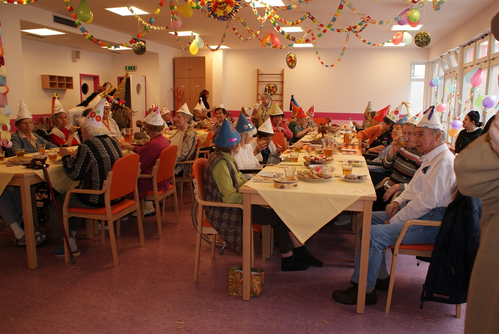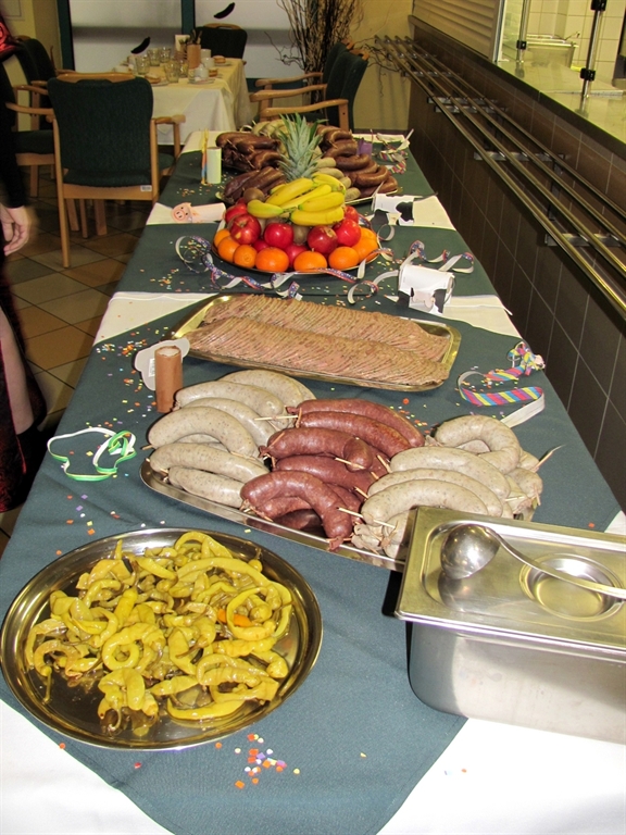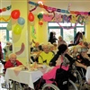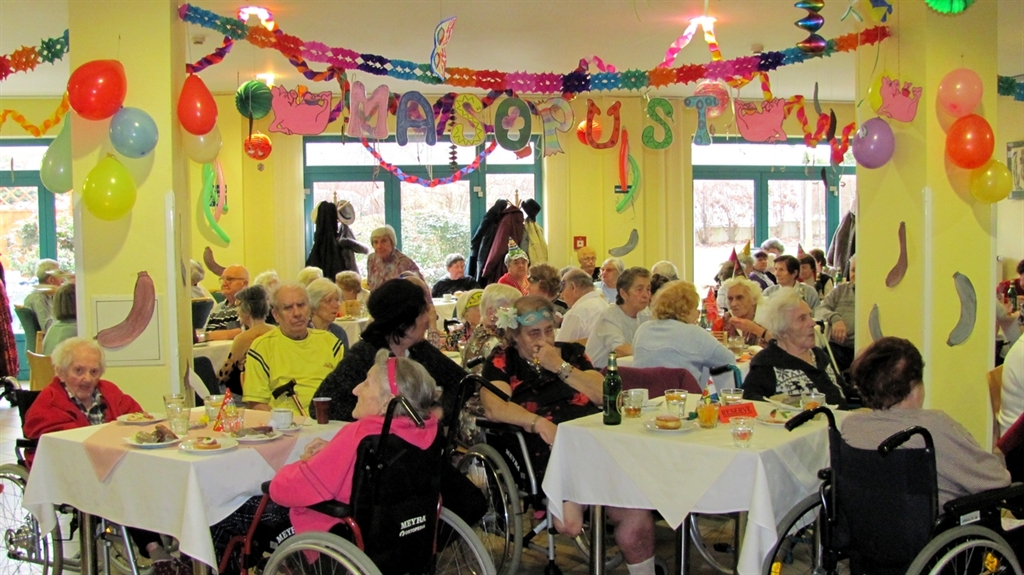 Nejrůznější papírové dekorace, girlandy a papírové květy, které zdobily tělocvičnu, v níž se zábava odehrávala, vyráběli v rámci ergoterapie sami obyvatelé domova. Podíleli se i na přípravě masopustních lahůdek – pekli třeba koblížky. Na stolech se vršily jitrnice a jelita, tlačenka, kyselé okurky, k tomu nezbytné pivo. K poslechu i tanci vyhrávalo Branické duo Michala Kotase. Nálada byla skvělá, bavili se všichni – obyvatelé domova, zaměstnanci, hudebníci i hosté. Stejně, jako o týden později v Domově seniorů Zvonková.