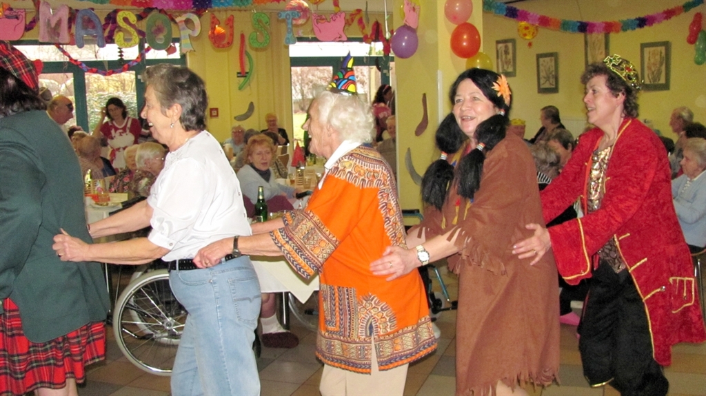 Průvody masek, bujará zábava, vůně koblih a zabijačkových pochoutek neovládly v únoru jen ulice a taneční sály. Masopust se stejně vesele slavil i v domovech seniorů Centra sociální a ošetřovatelské pomoci v Praze 10. A nechyběly při tom typické součásti masopustního folklóru - maškarní kostýmy, muzika, tanec a plné stoly. V Domově seniorů U Vršovického nádraží slavili masopust tradičně, masky vycházely z lidových zvyků: kobyla, medvěd, mládenec, turci, slamění muži. Nebyly přitom vypůjčené někde u profesionálů – ušily je přímo v domově ergoterapeutky, sociální pracovnice, sestřičky.
