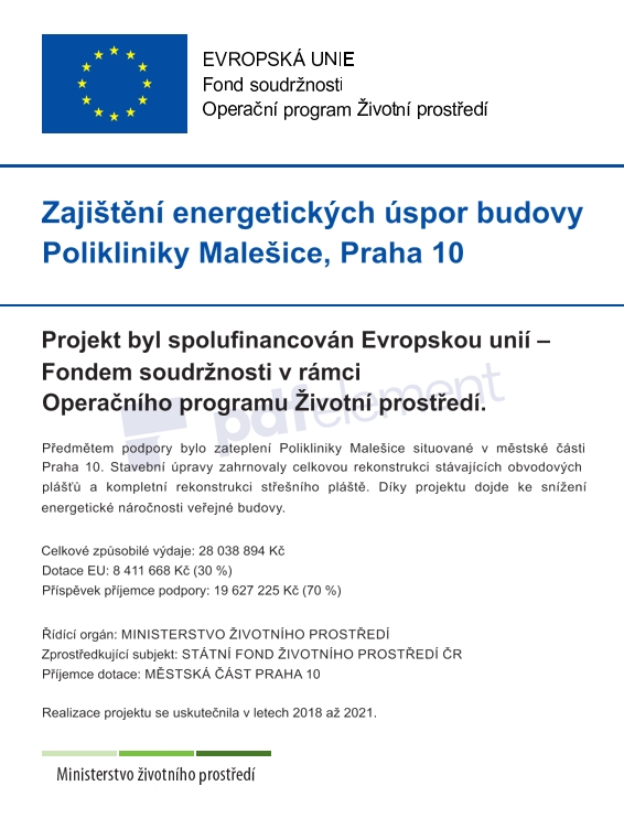 Rekonstrukce malešické polikliniky trvala 2,5 roku (Subterra ji zahájila v lednu 2019) a stála 313 milionů korun bez DPH. „Jednalo se o velmi náročný projekt, který plně odpovídal stáří budovy ze 70. let minulého století. Došlo k celkové rekonstrukci obvodových plášťů a výrazné modernizaci všech vnitřních prostor. Zdůraznila bych, že v celém objektu jsme odstranili veškerý azbest,” popisuje Olga Koumarová (ODS), radní pro investice MČ Praha 10.