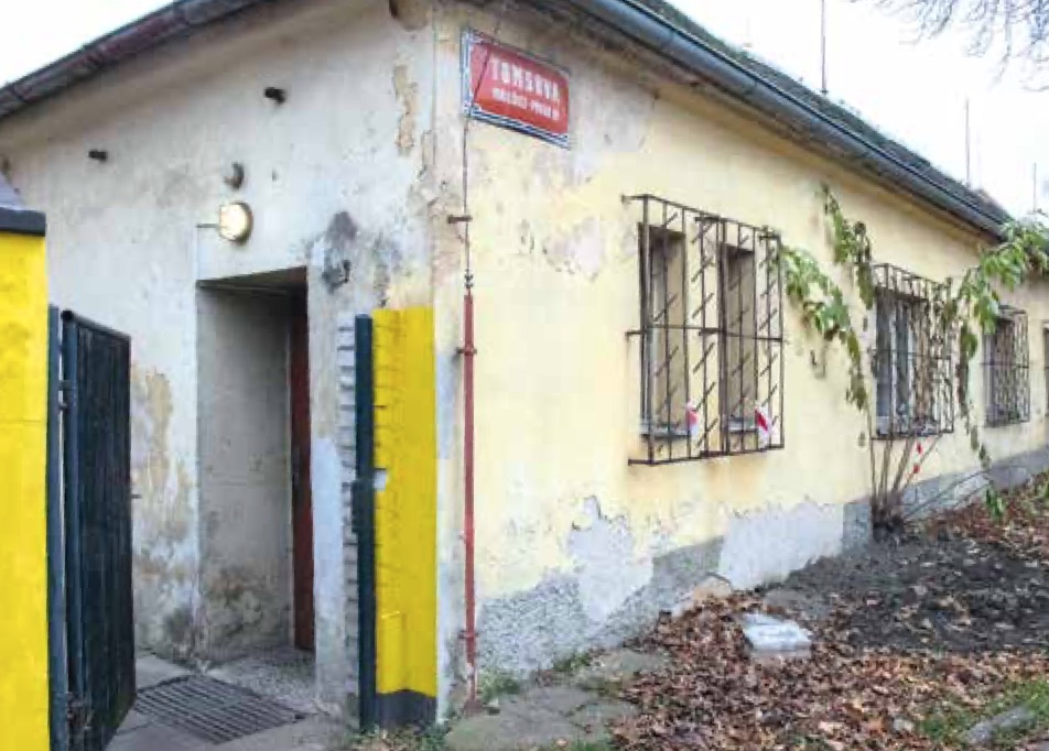 Podlouhlá přízemní budova působí omšele, kolemjdoucí by ji nejspíš minul bez povšimnutí. Ke vstupu ničím neláká a její nové využití signalizuje pouze nepatrná cedulka na okně. Když vejdete, pocítíte atmosféru osmdesátých let, kdy se nejspíš prováděly poslední rozsáhlejší úpravy interiérů včetně typického kachlíčkování veřejných sprch. Údajně zde také byly společné šatny a zázemí hospodářského dvora, nálepky na zadních dveřích zase dosvědčují zašlou slávu využití objektu pro potřeby autoškoly. Naše průvodkyně nicméně vypráví, že prostory převzali v překvapivě dobrém stavu, stačilo jen pořádně vygruntovat. Čisto tu opravdu je, teplo také a nechybí ani nefalšované nadšení těch, kteří se o všechno starají.